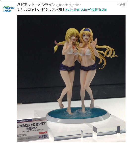 アルターの新作「IS インフィニット・ストラトス シャルロット&セシリア 水着Ver.」。画像はハピネット・オンラインさんのTwitterより拝借。